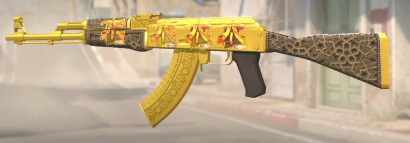 A AK-47 | Arabesca Dourada é uma das skins existentes que representa a arte arabesca | Foto: Reprodução/X/Plasma1337Quanto aos itens, a desenvolvedora procura por adesivos com temática de Frutas e Vegetais, podendo escolher também algo relacionado a Carros de Corrida. Já é possível inscrever itens para o concurso utilizando a ferramenta da própria Oficina Steam.