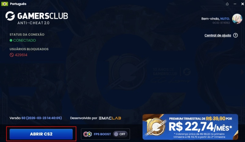 Foto: Reprodução/Gamers ClubUma vez instalado o Gamers Club Anti-Cheat, acesse o atalho criado em sua Área de Trabalho. É por ele que você irá abrir o Counter-Strike 2. Muita atenção: caso abra o jogo por um caminho que não do Anti-Cheat, você será expulso dos servidores.