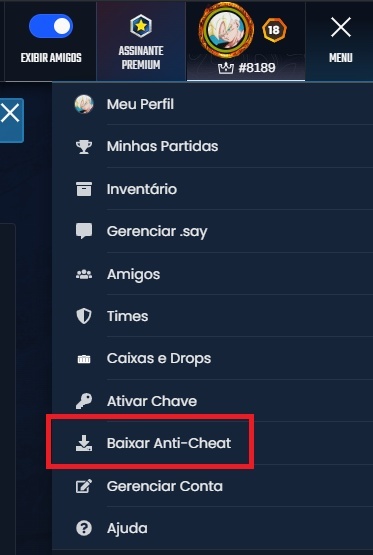 Uma vez logado na Gamers Club, procure pelo menu no canto superior direito e selecione a opção "Baixar Anti-Cheat". Não tem segredo: é só seguir os passos do executável e conceder as permissões necessárias para concluir a instalação.