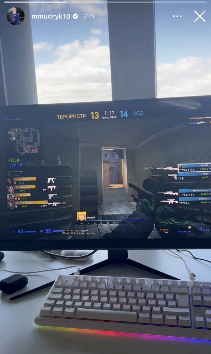 Mudryk compartilhou um storie jogando, ainda nos tempos de CS:GO | Reprodução/InstagramO jogador ucraniano foi suspenso em dezembro de 2024 depois de testar positivo para substância proibida. Já em junho deste ano, um segundo teste fez com que Mudryk fosse denunciado, podendo pegar um gancho de até quatro anos.