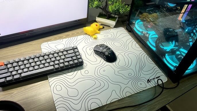 A começar pela opção mais em conta da lista, o Attack Shark Esport traz uma base de borracha de aproximadamente 4mm e apresenta bordas costuradas. É de nível intermediário: nem tão rápido, nem tão lento.