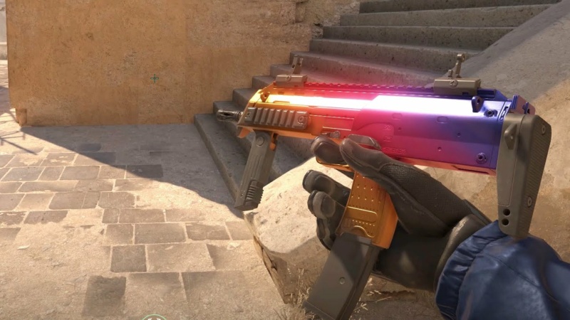 Introduzida ao Counter-Strike ainda em setembro de 2018 como parte da nova Coleção da Inferno, a MP7 | Degradê chama atenção pela mescla das cores amarela, rosa e azul em um estilo degradê. É tão barata quanto chamativa, custando aproximadamente R$25 na versão Testada em Campo.