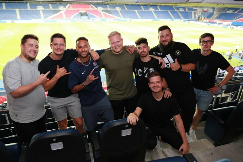 Já com Spinx, elenco da Vitality posa ao lado de Neymar | Foto: Reprodução/Twitter/@Vitality_apEXApesar da contratação do trio ex-Astralis, que obrigou a equipe a se comunicar em inglês pela primeira vez em sua história, a Vitality ainda permaneceria com três atletas franceses - apEX, ZywOo e misutaaa - até o fim da primeira metade do calendário competitivo.